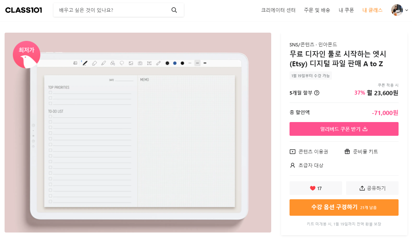 오픈 전 얼리버드 판매 기간이라 나중에 정식 오픈 후에 수강권을 구입하시는 것보다
