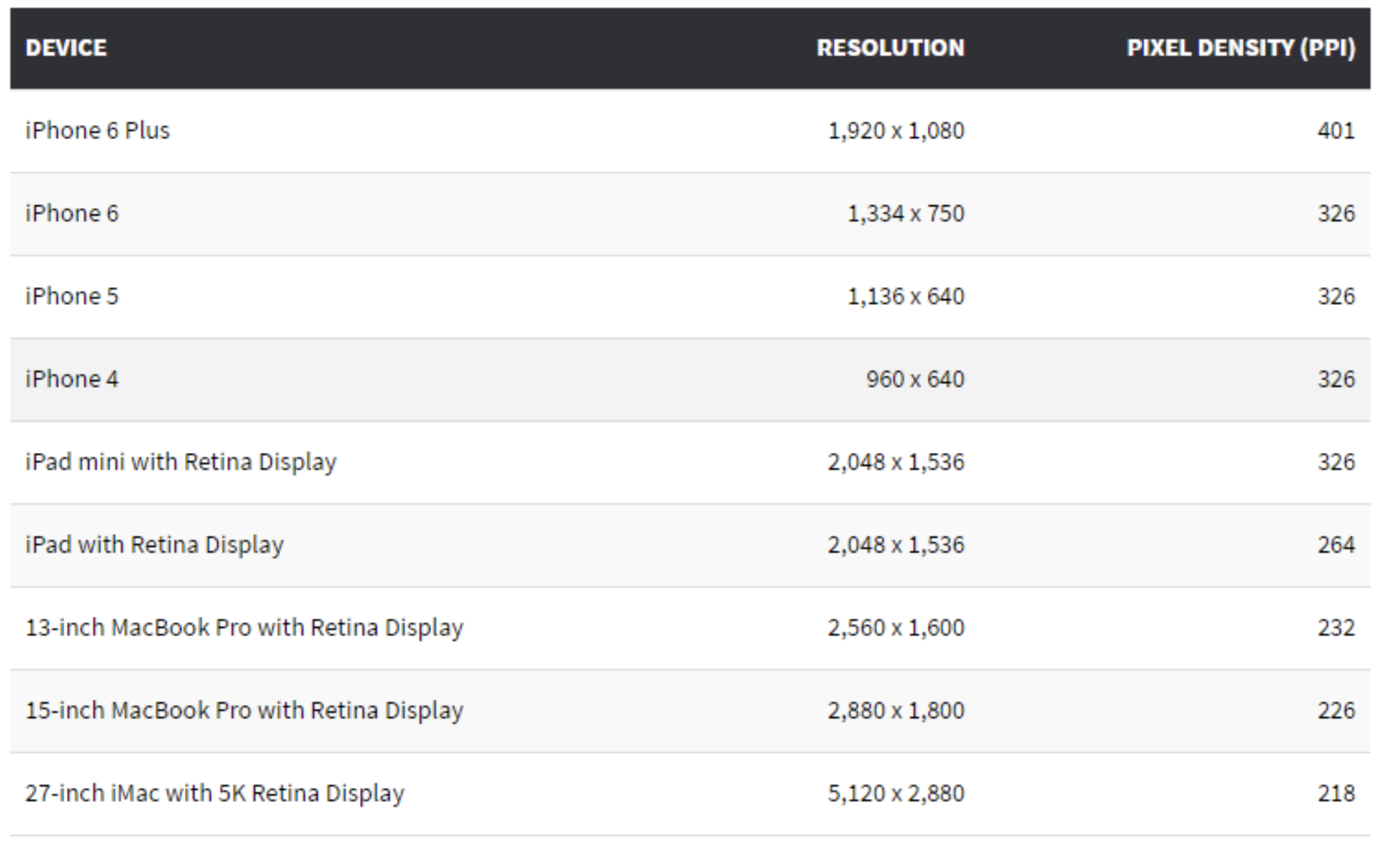 아래 표는 대표적인 전자기기들의 디스플레이 해상도입니다 :)