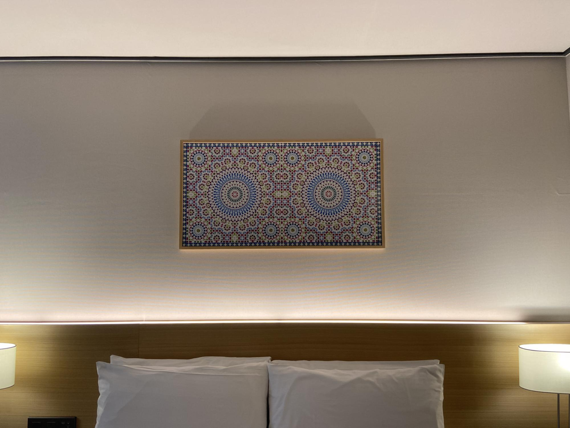 침대 위 액자를 찍는답시고