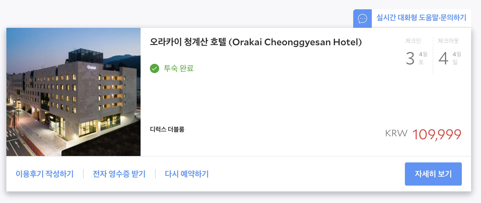 그중에서도 청계산입구에 있는 요 오라카이 호텔이 괜찮아보여서 선택했습니다.