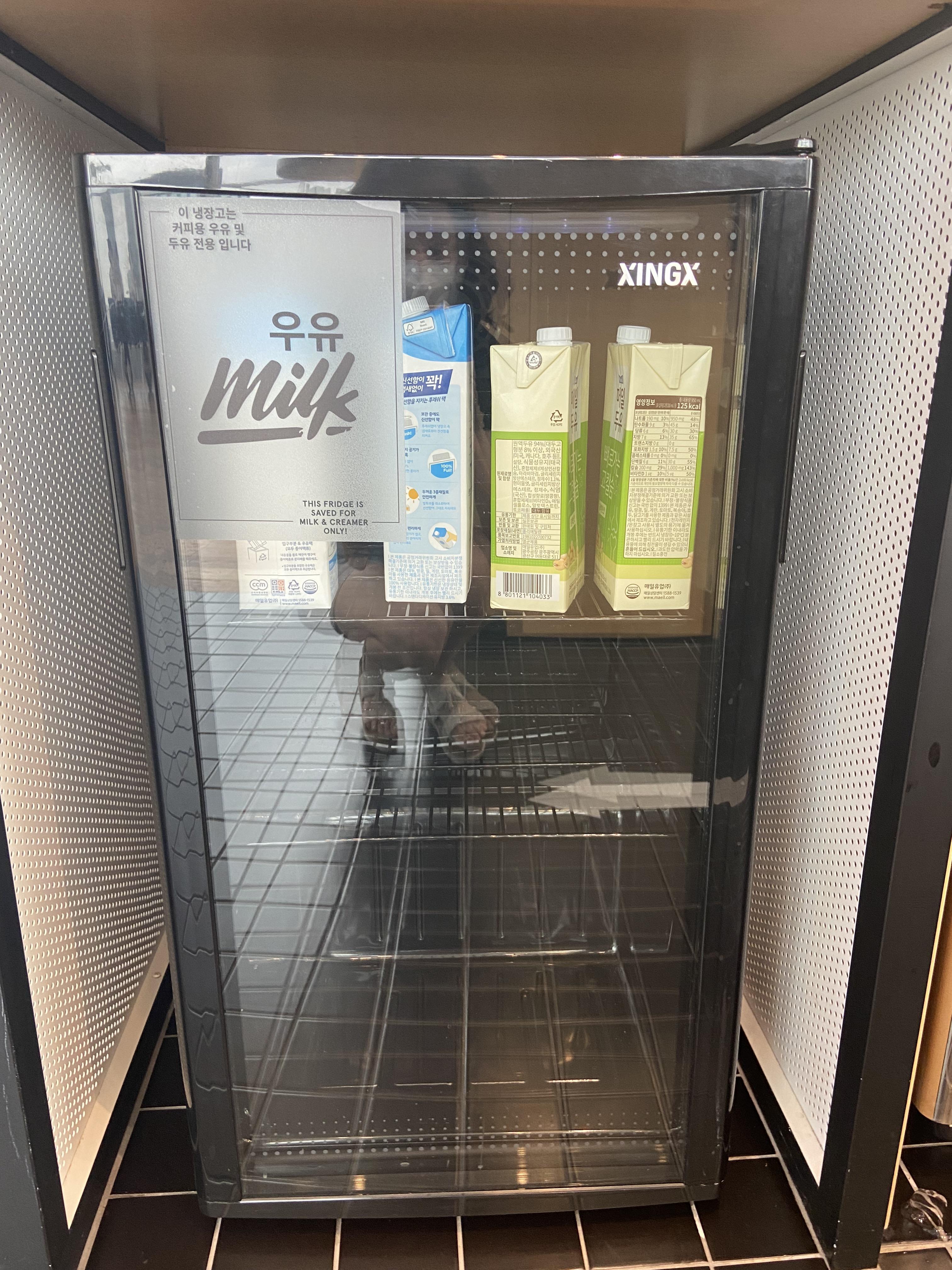 이렇게 우유, 두유, 아몬드 브리즈와 얼음까지 제공되어서