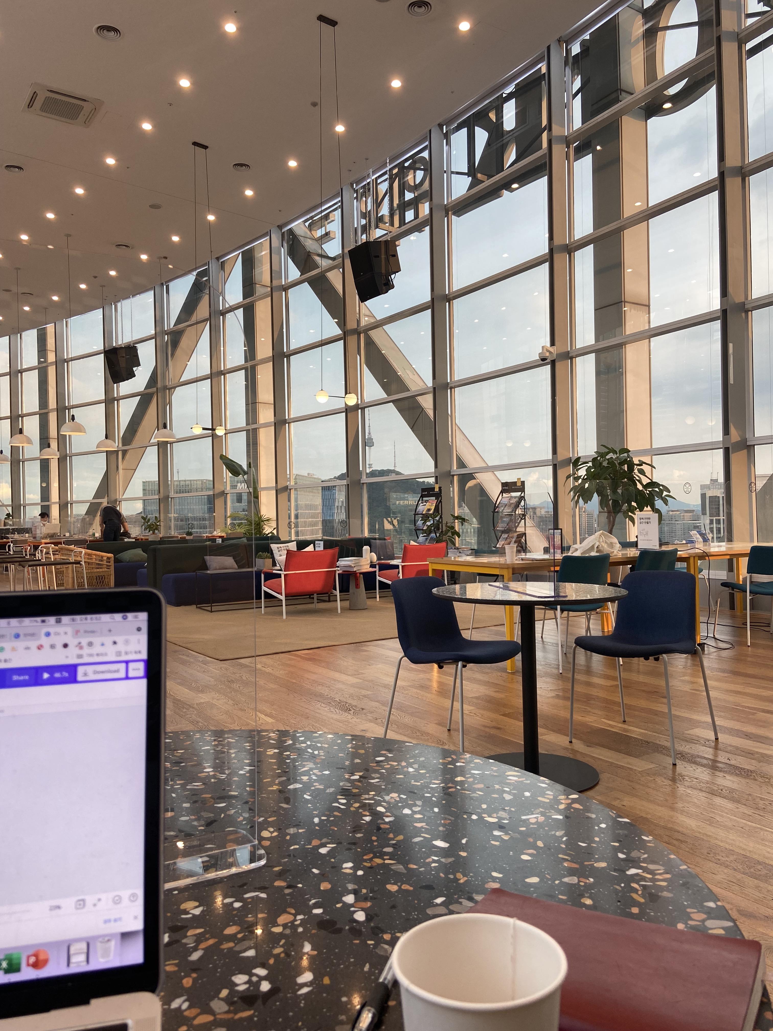 운이 좋게도 남산타워가 바로 보이는 자리에 앉아서