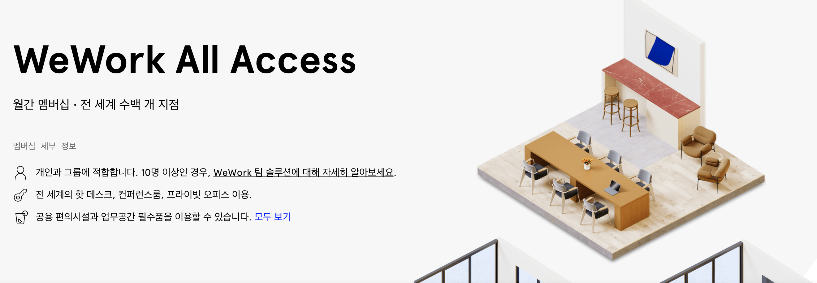위워크 올액세스(WeWork All Access) 라는 회원권을 등록해주셨어요.