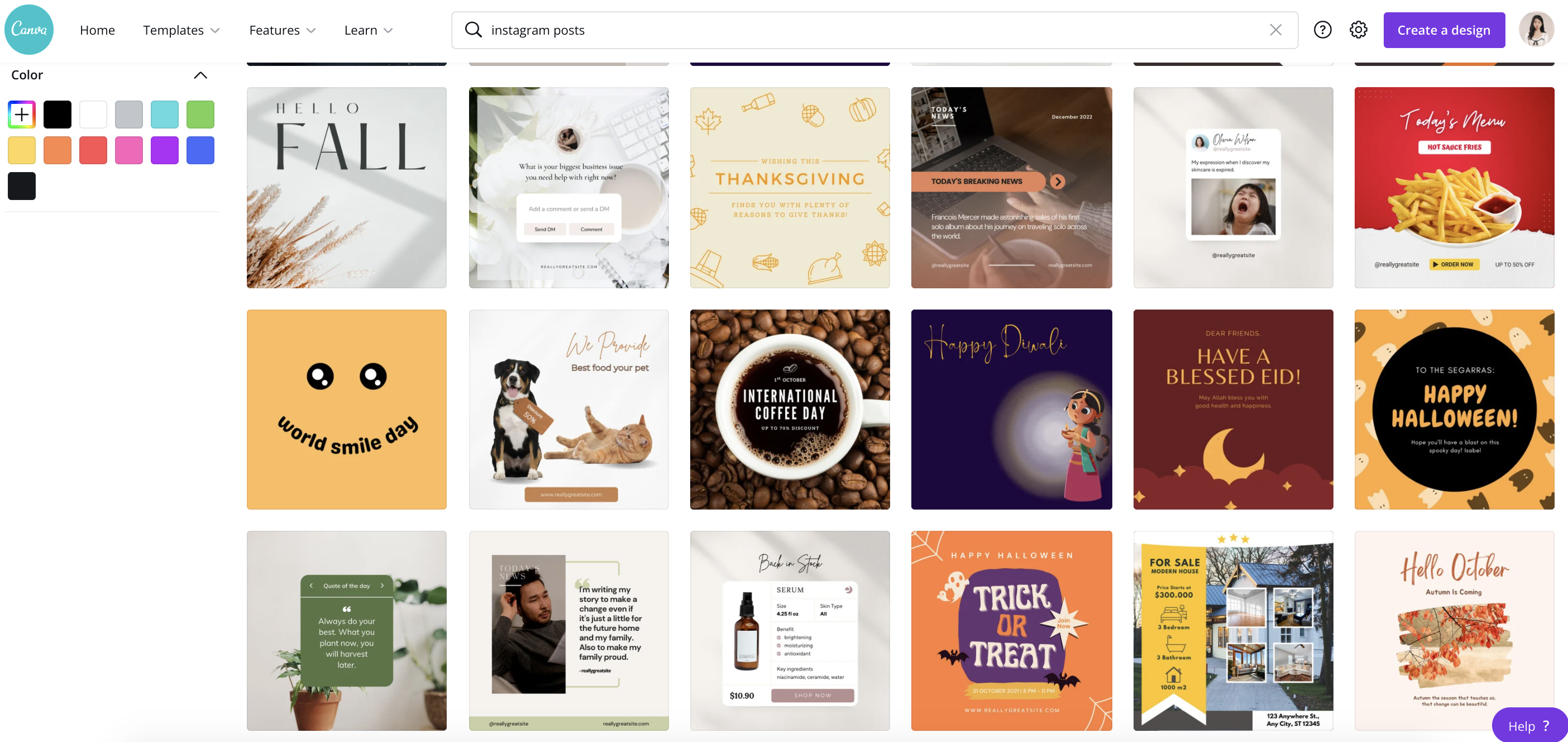 캔바에는 엄-청난 양의 인스타그램 템플릿이 있어요😀