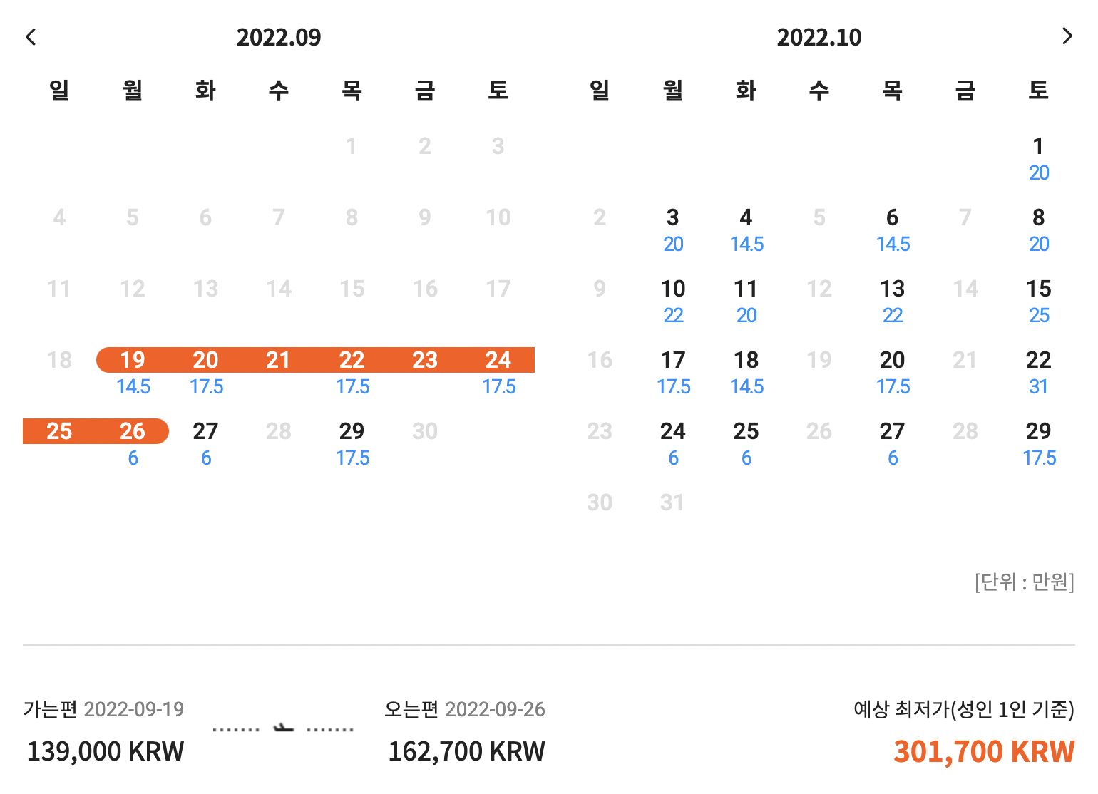 가장 저렴한 날짜를 찾아서 예매하시면 될 것 같아요!