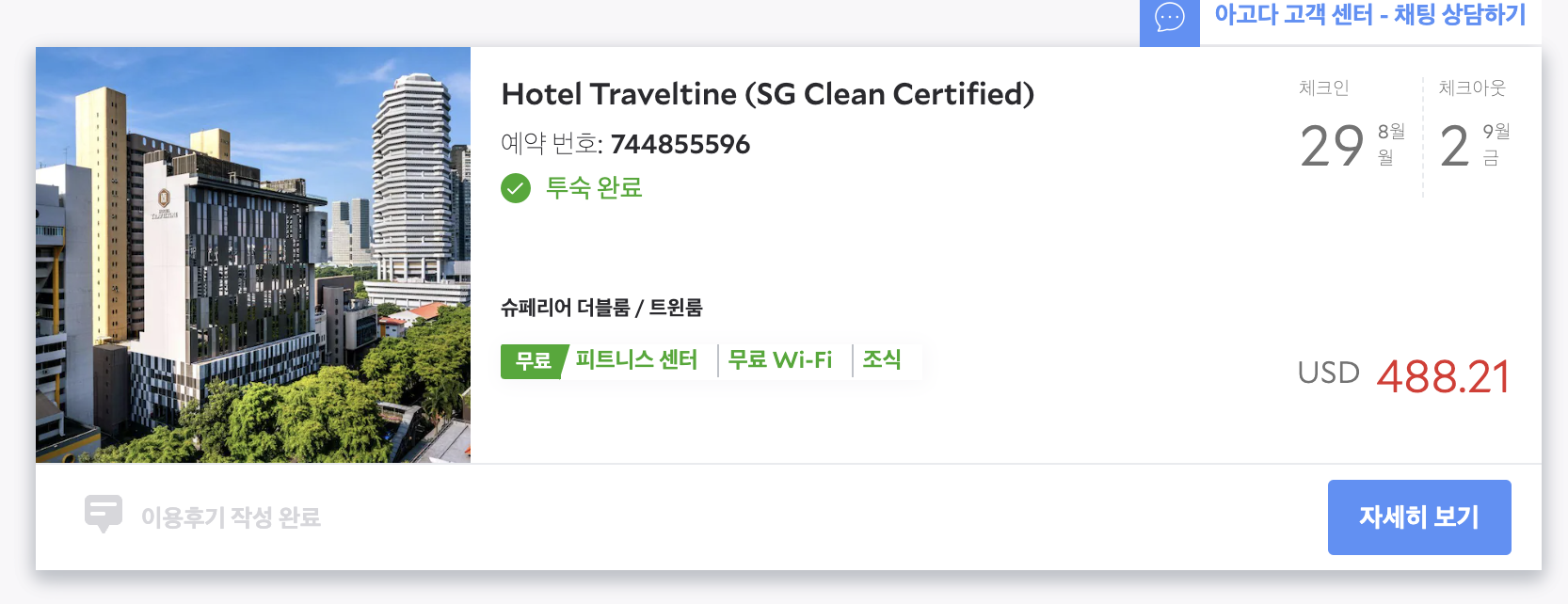 저는 출국 1주일 전에 예약했고, 이것저것 할인을 받아 4박에 488달러에 결제했습니다.