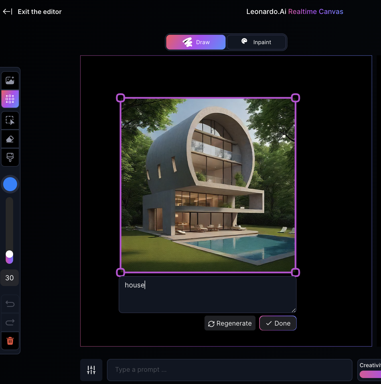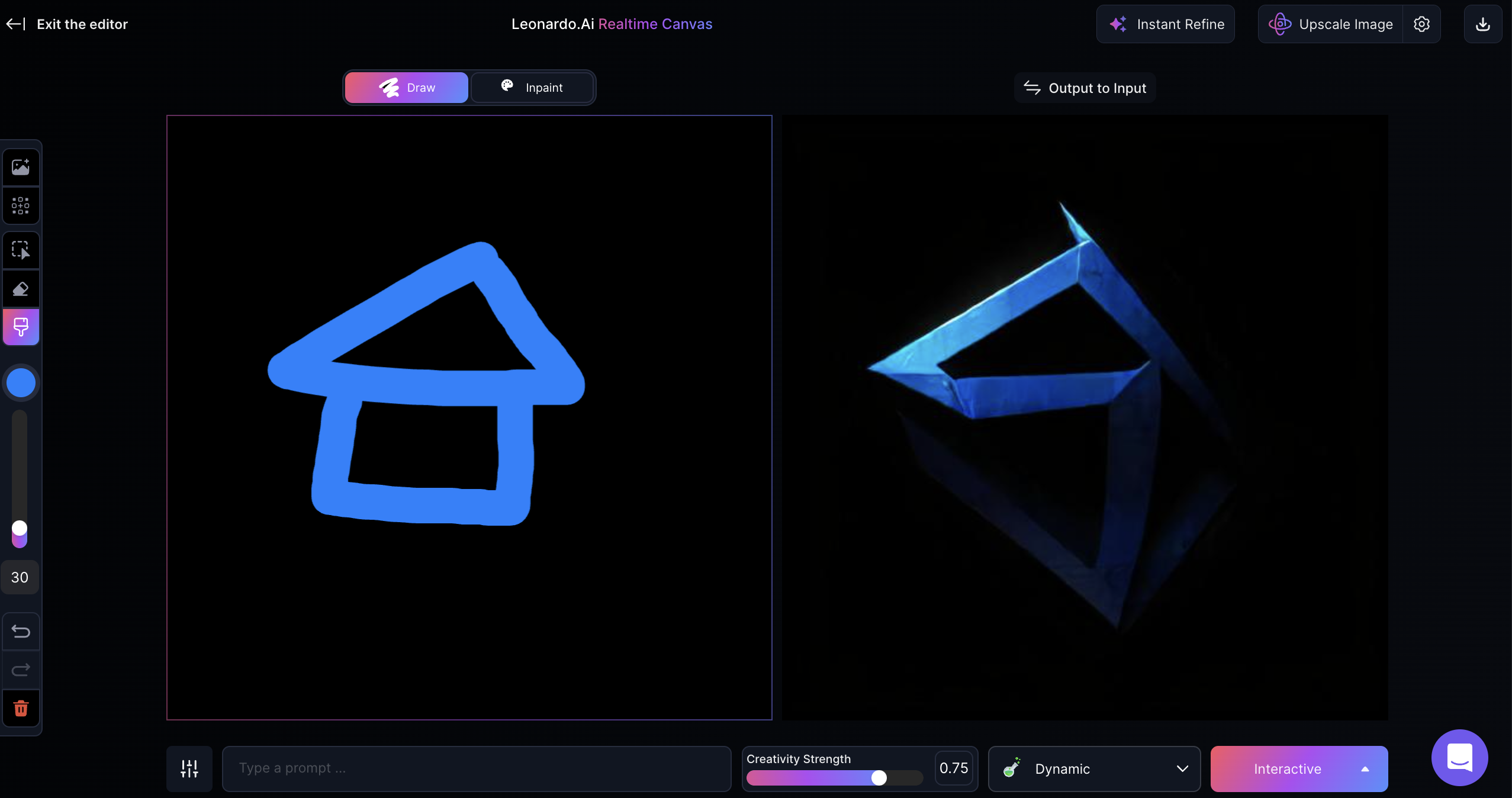 그 다음 Leonardo 가 갖고 있는 기능 중 유용한 기능은 바로 Realtime Canvas 입니다.