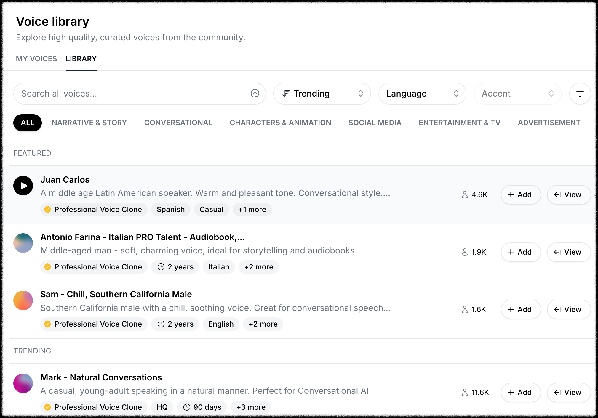 - 3개의 프로페셔널 음성 클론 제공
