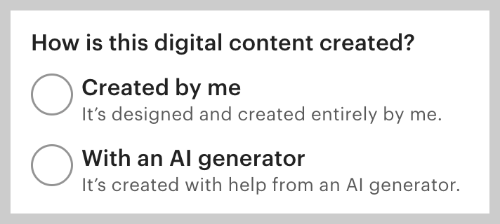 단, AI를 이용해 디지털파일을 만들어 판매할 때에는