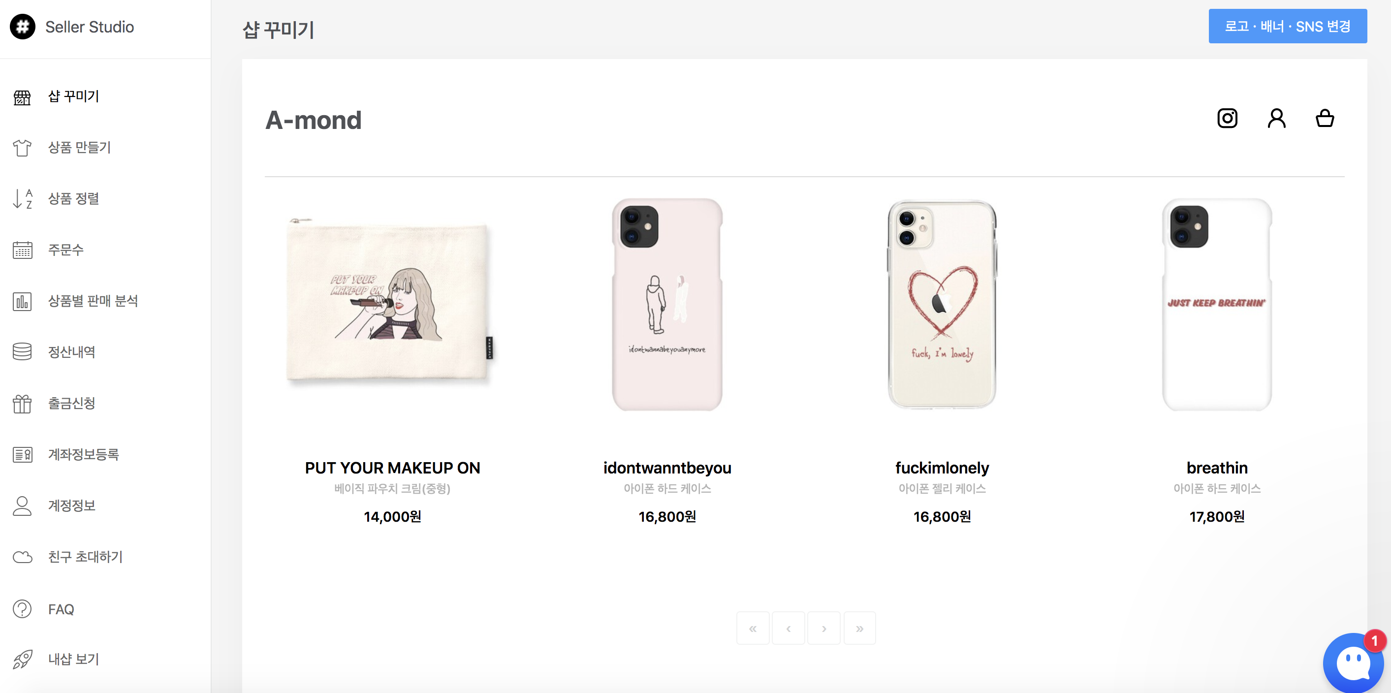 기본적으로는 샵 꾸미기에서 샵 이름 설정, (있다면) SNS 주소 입력, 로고/배너 업로드 등의 작업을 해주고