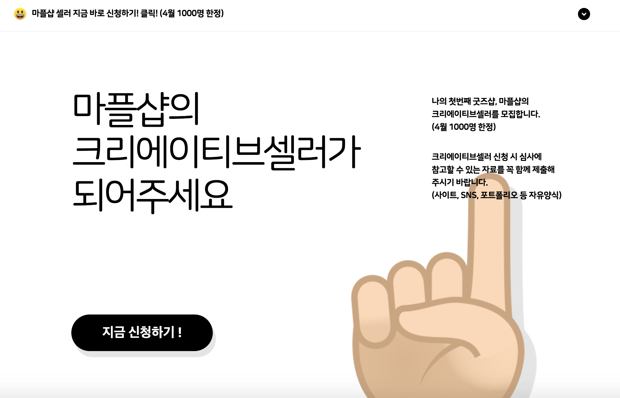 밑으로 내리면서 내용을 쭉 읽어보고, 아래에 있는 마플샵 셀러 지금 바로 신청하기! 클릭! 배너를 눌러본다.
