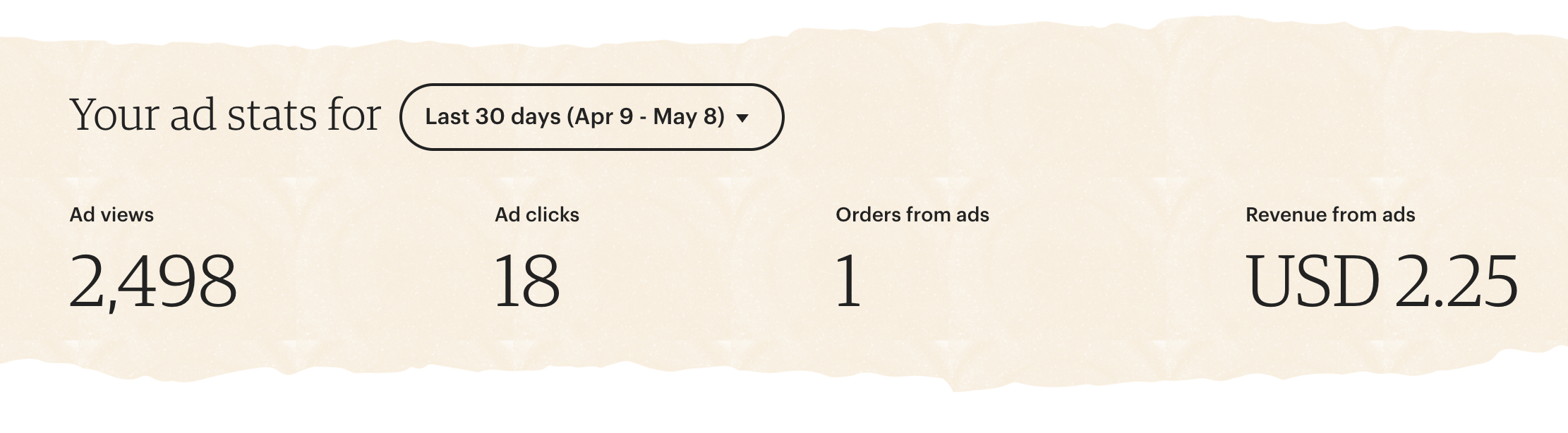 이번 판매는 Etsy Ads를 통해 이루어졌다.