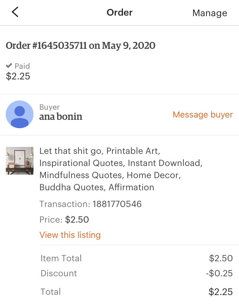 지난 4월 25일 Etsy에 디지털 아트 판매 샵을 오픈한 지 약 2주가 지난 오늘, 드디어 첫 판매가 이루어졌다!