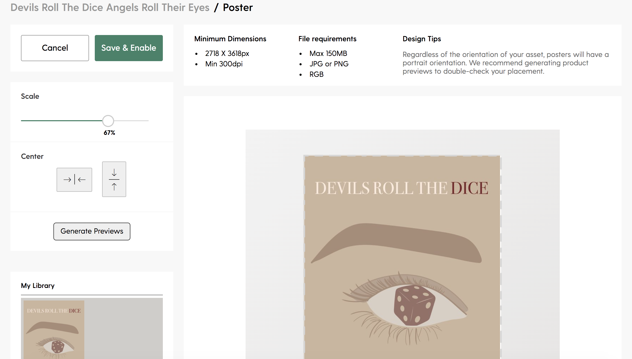 Poster를 클릭하여 수정 페이지에 들어오면, 상단에 이미지 파일에 대한 요구사항들이 있다. 이는 상품마다 다르다. 그렇기 때문에 하나씩 확인해보고 수정할 것이 있으면 수정한 파일을 재 업로드해주어야 한다.