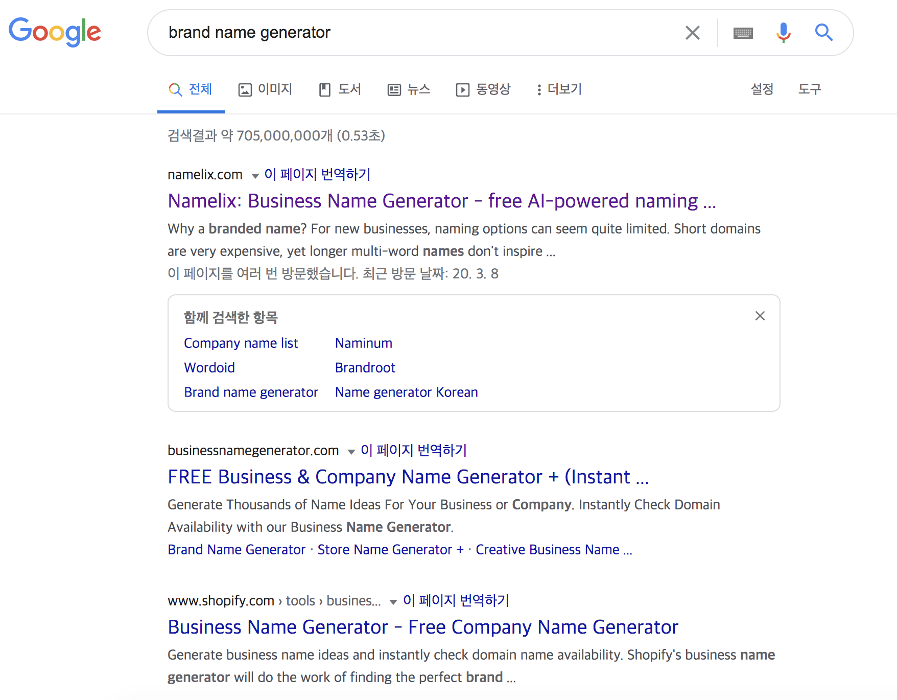 구글에 'brand name generator'라고 검색하면, 신규 비즈니스를 위한 이름을 만들어주는 사이트가 여러 개 나오는데요,