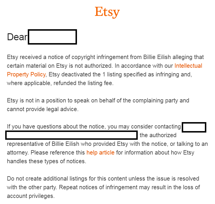 엣시에서 지적 재산권 침해 통지를 받았을 때 대처법
